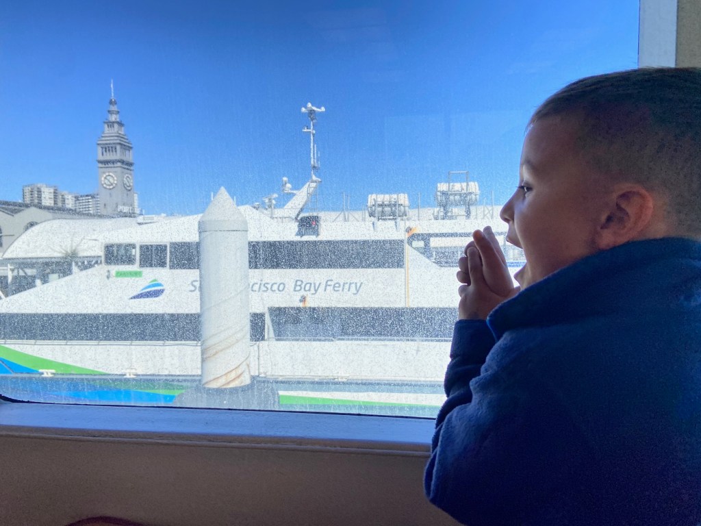 ChatGPT suggested skipping the car and starting our day with the Harbor Bay Ferry. It is a 25-minute ride that doubles as an adventure in itself, with bridges, skyline views, and maybe even a whale sighting (true story: I spotted one on my commute once!).