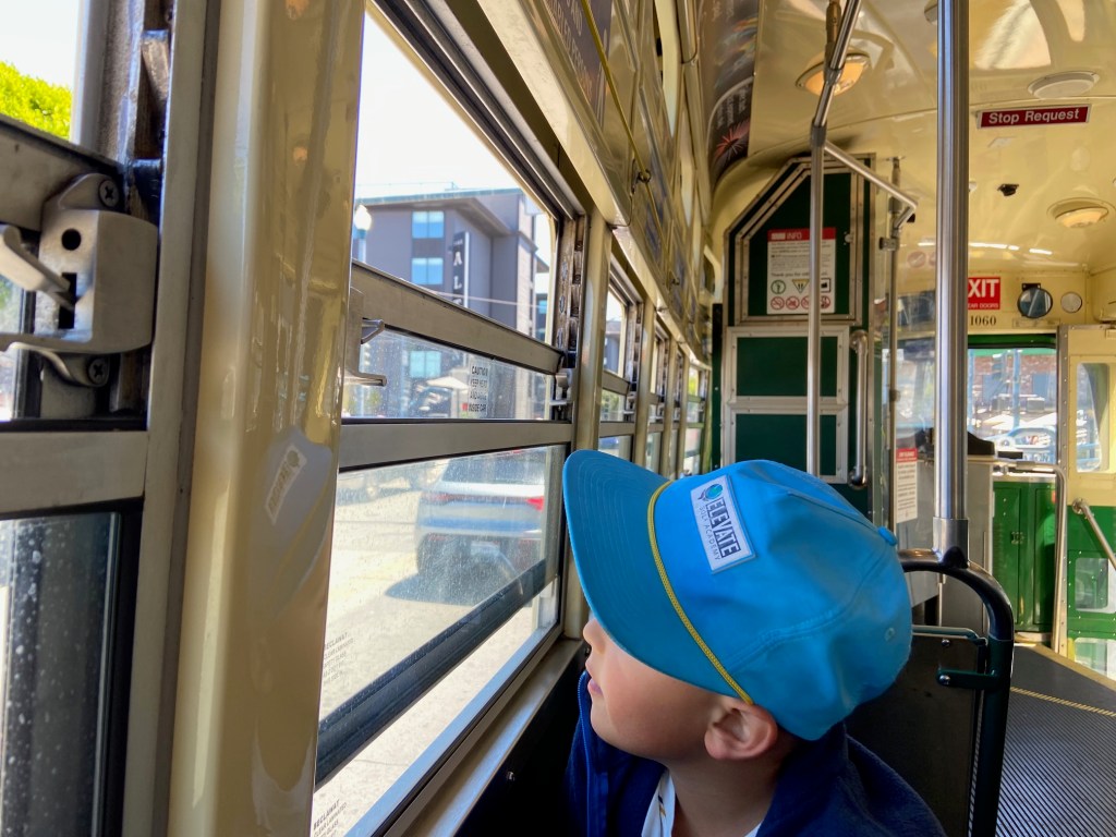 From the Ferry Building, ChatGPT gave me two options: a 25-minute walk along the Embarcadero or the historic F-line streetcar. I went with the streetcar since my son loves riding in them.