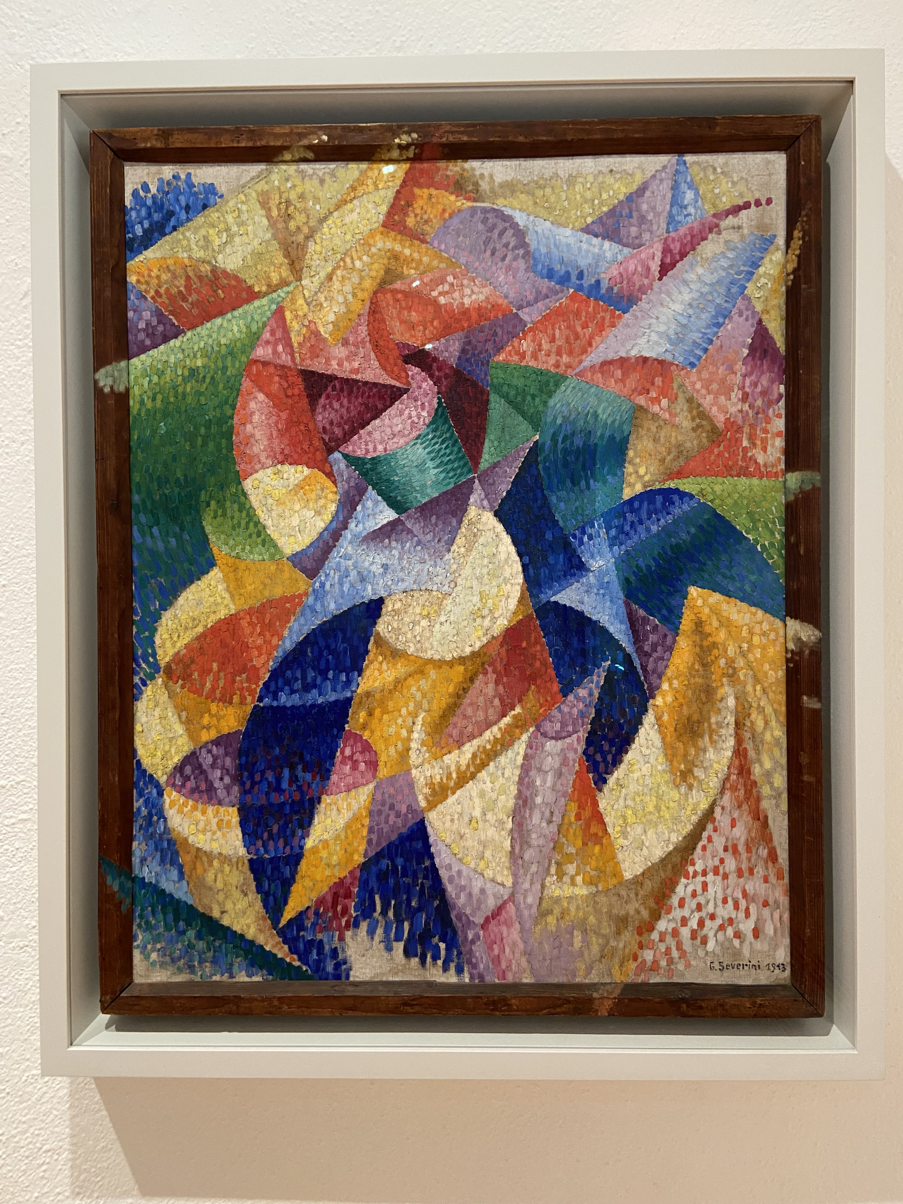 It also placed the work within Futurism, a movement founded in the early 1900s that celebrated speed, technology, machines, and the modern city. The painting combined elements of Cubism (geometric planes) with Divisionist color theory (shimmering, pointillist brushwork).